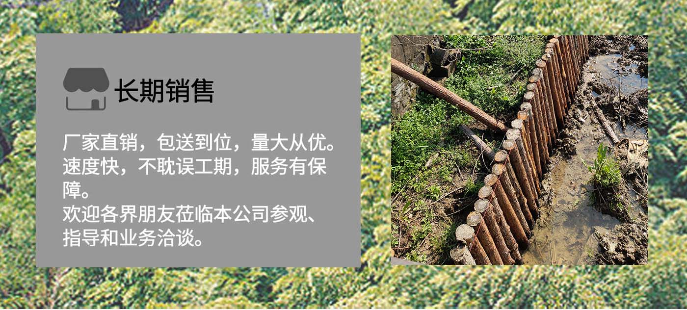 南京市云森木業(yè)有限公司位于南京市高淳區(qū)。是一家生產(chǎn)加工,線上銷售為一體的現(xiàn)代化企業(yè)。擁有完善、科學(xué)的質(zhì)量管理體系及工作團隊。 公司主營松木樁,杉木樁,打樁木,河道木樁,駁岸木樁,防汛木樁,景觀木樁、園林綠化支撐桿等,也可支持方料,木板等木材定制加工產(chǎn)品,所選原材料均為黃山中心林區(qū),樹齡均在三十年左右。質(zhì)地緊密,樹形優(yōu)美。 本公司貨源充足,供貨能力強,地處高淳,交通方便利,江浙滬皖送貨上門,當(dāng)天可達(dá)。本著“誠信為本,客戶至上”的經(jīng)營宗旨,真誠希望與您合作。 歡迎各位客戶前來咨詢,定以優(yōu)良品質(zhì)和價格回饋廣大客戶。
